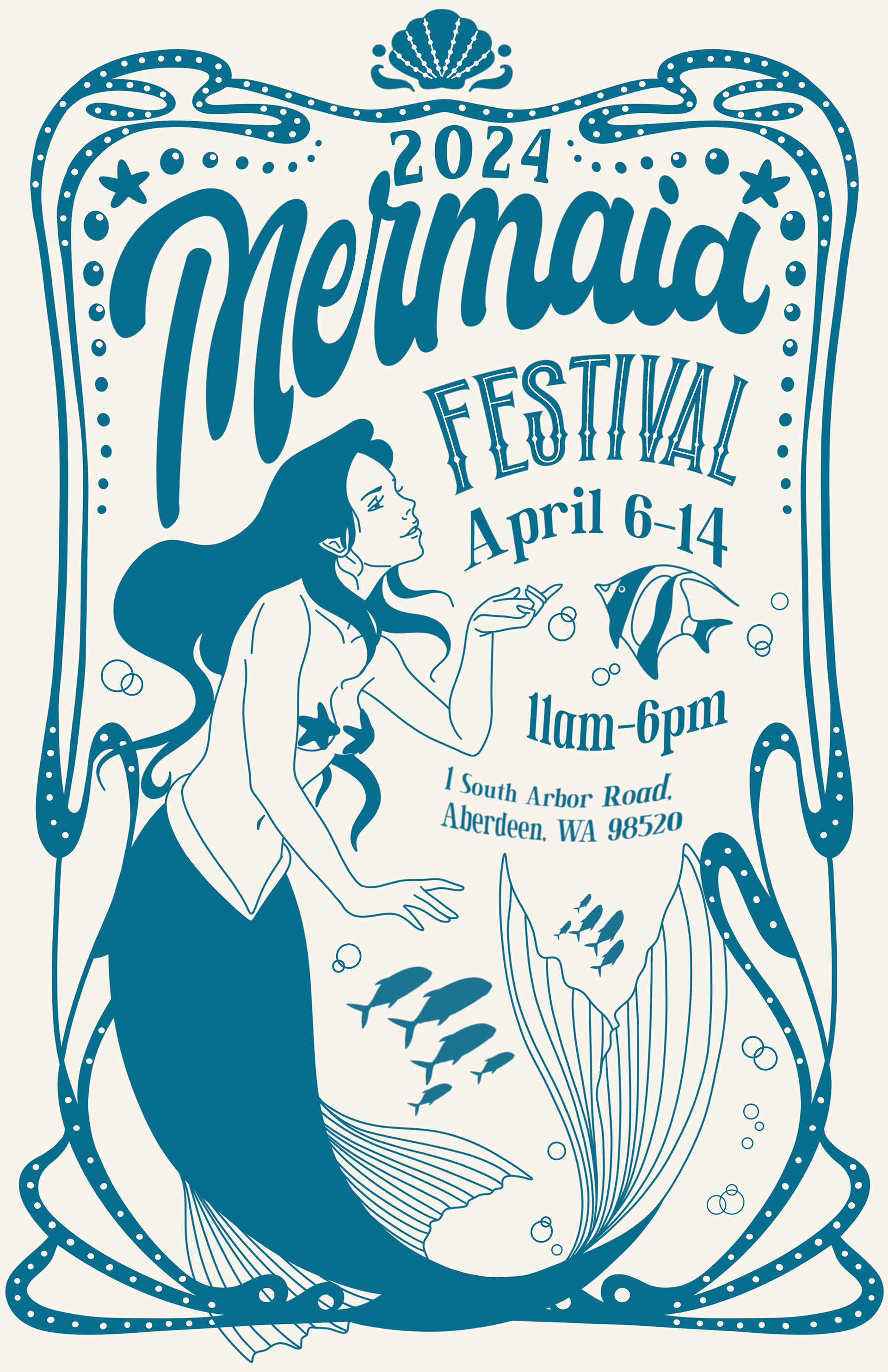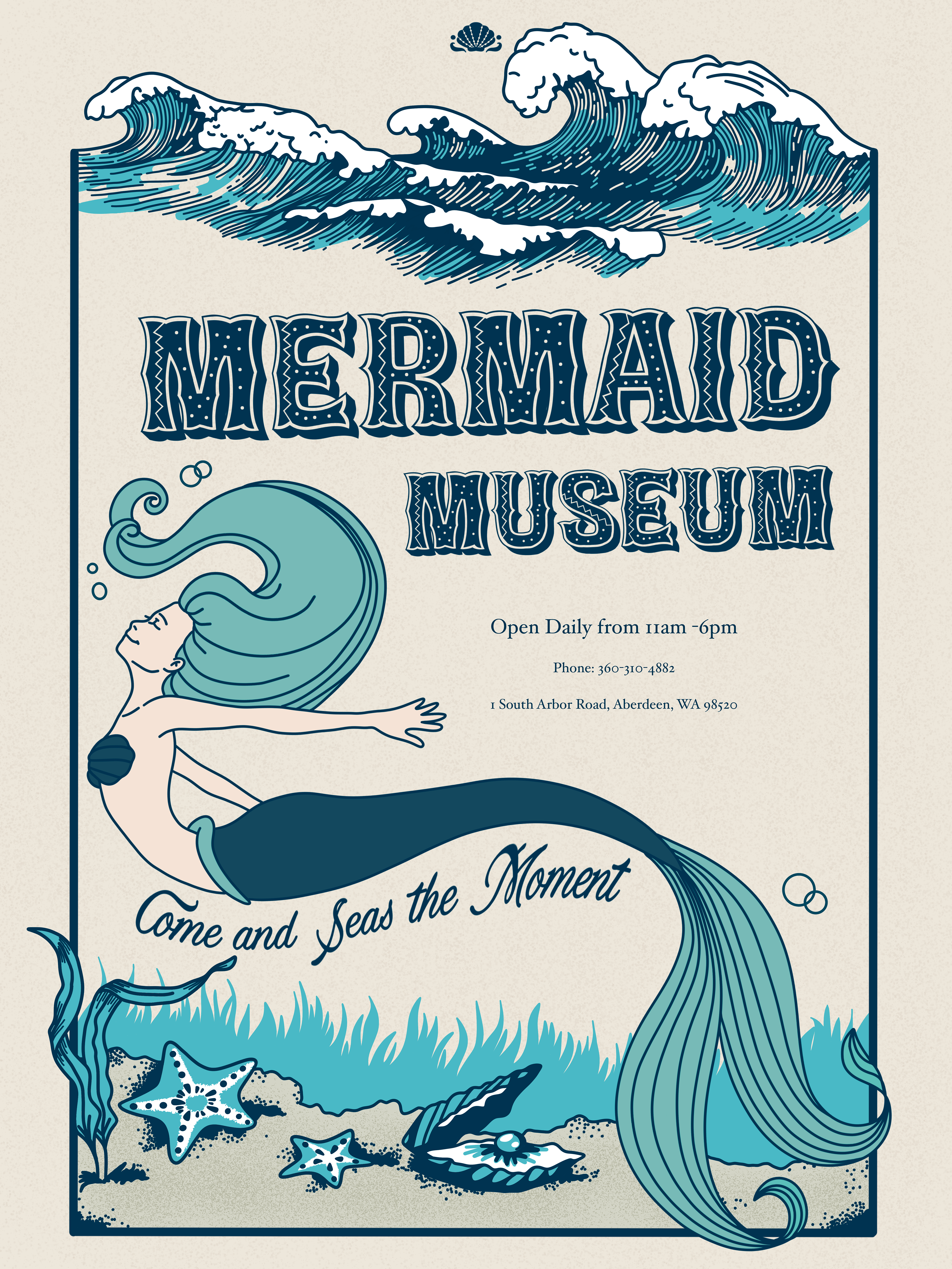 Promotional posters for the Mermaid Museum in Washington, USA.