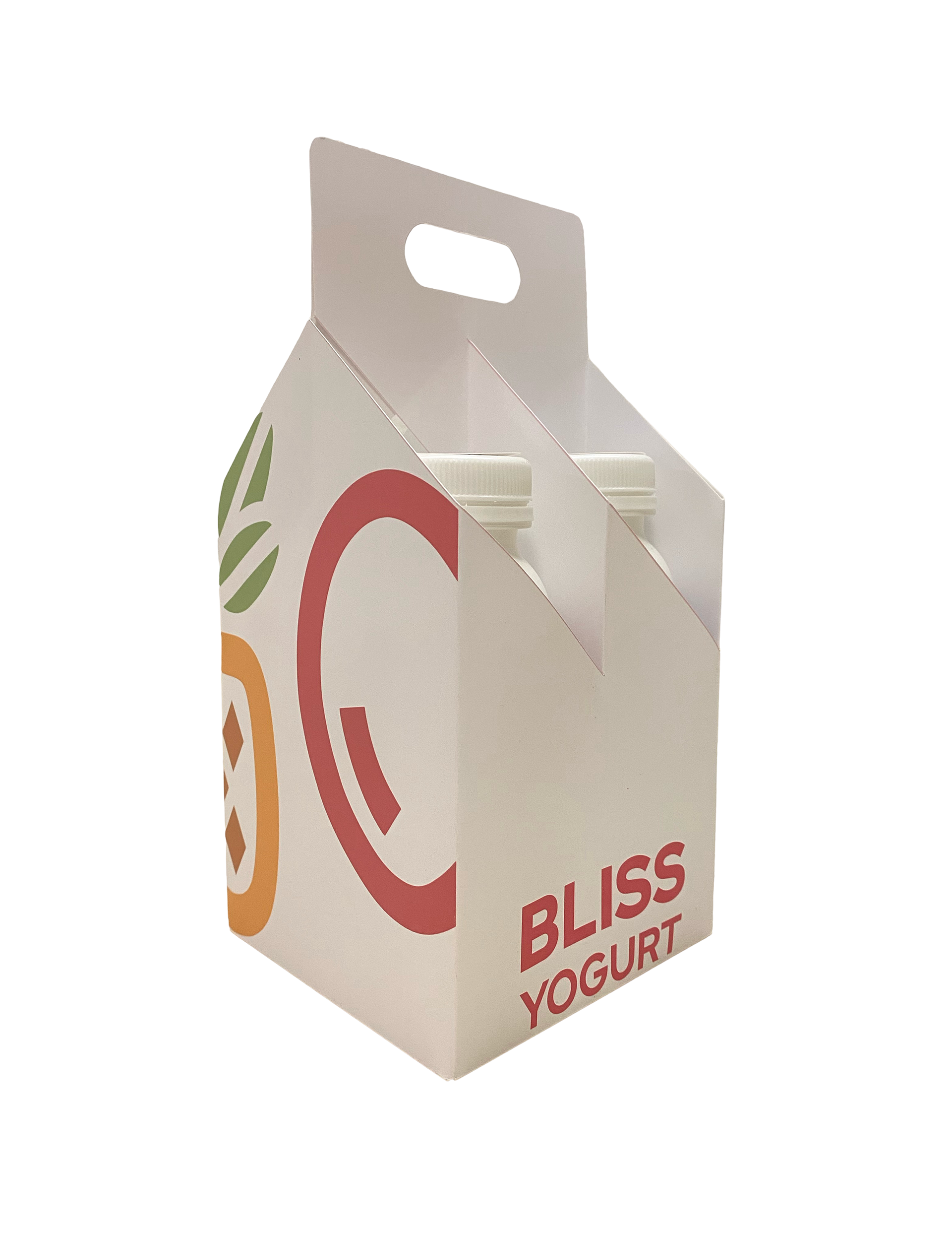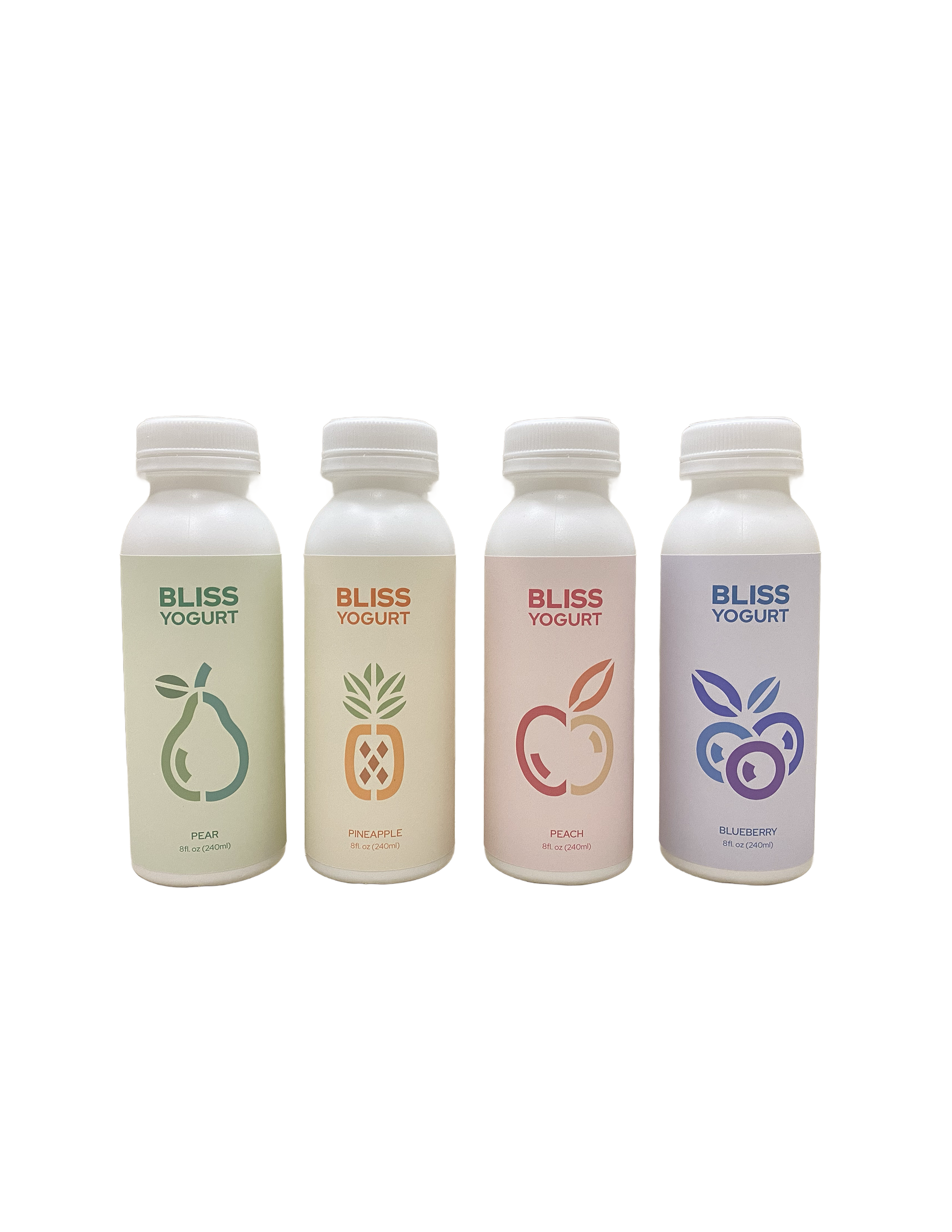 A set of four yogurt drink designs, inspired by the Minimalism Art movement for a clean and modern look.